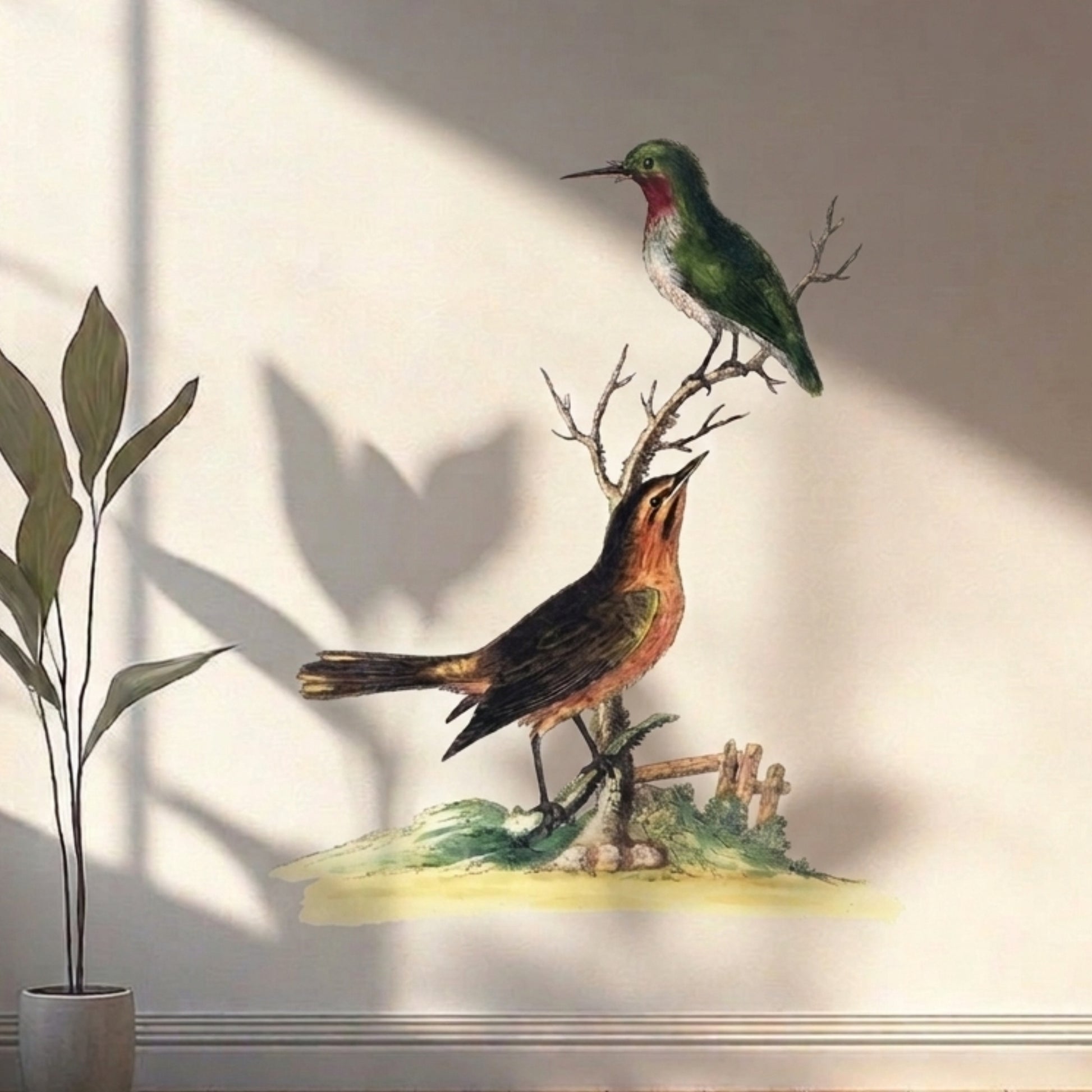 - Beautiful bird illustration with a classic vintage feel.