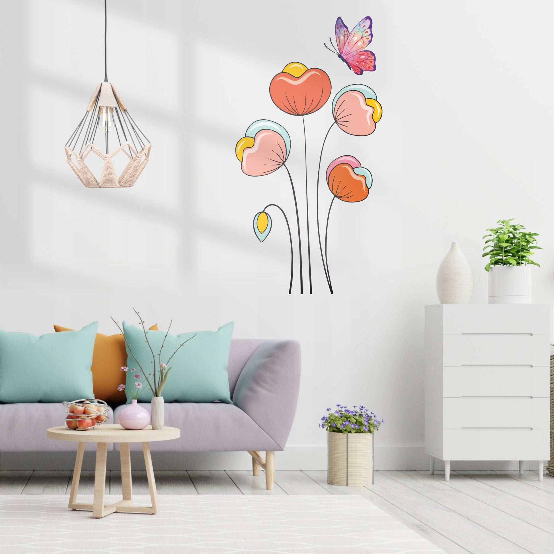 - Playful Floral & Butterfly Wall Sticker with a modern illustrated style.